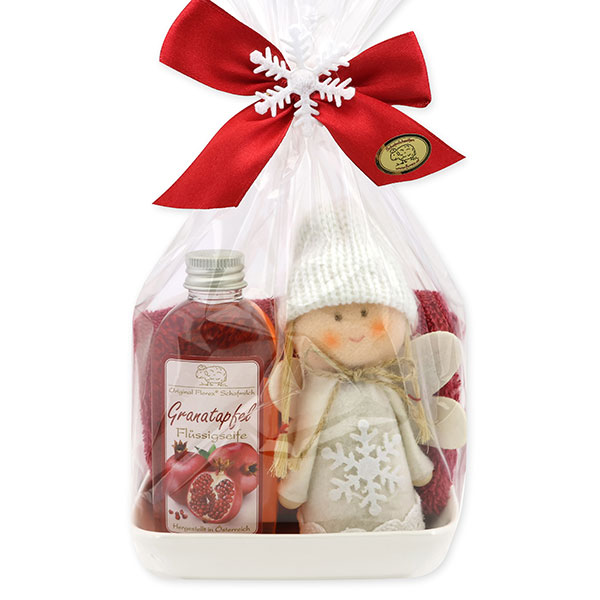 Pflegeset 3-teilig mit Stoffengel in Cello, Granatapfel