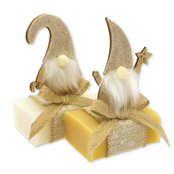 Schafmilchseife eckig 100g dekoriert mit Wichtel, Classic/Zirbe