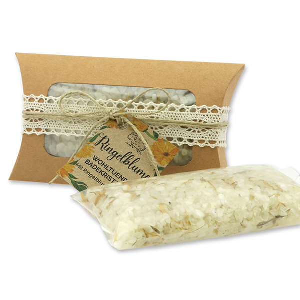 Bath salt 120g in a pillow with a window "feel-good time", Marigold