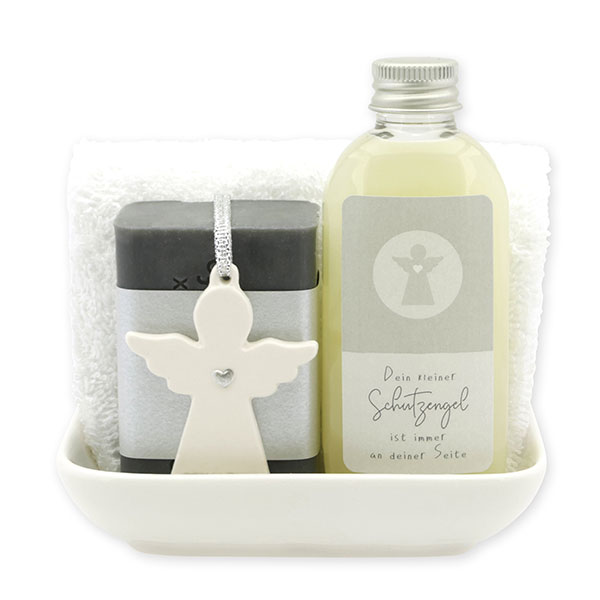 Care set 4 pieces decorated with guardian angel with heart in a cellophane bag, Classic/Christmas rose
