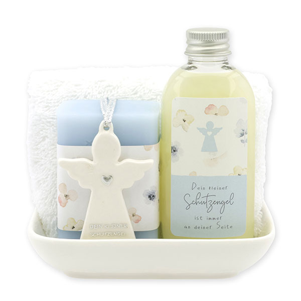 Care set 4 pieces decorated with guardian angel with heart in a cellophane bag, Classic/Forget-me-not