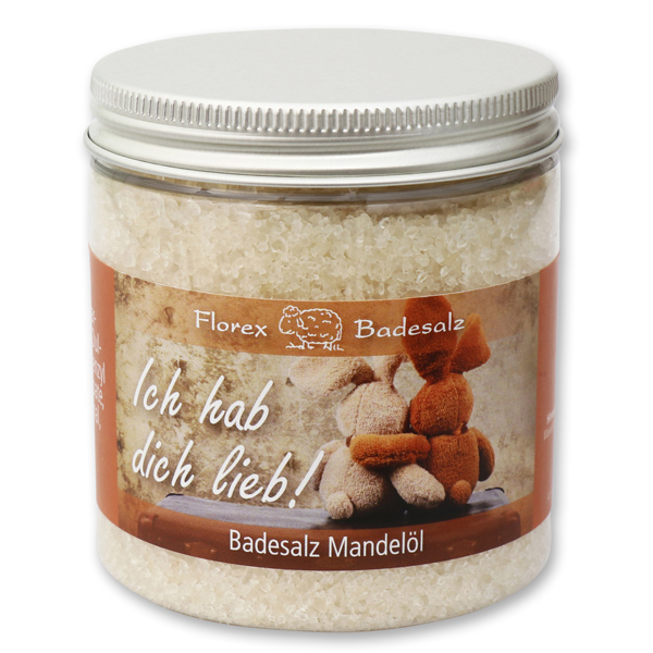 Bath salt 300g in a container "Ich hab dich lieb", Almond Oil