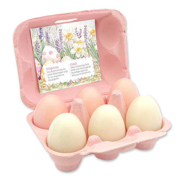 Sheep milk soap easter egg 61g "Charming Easter Motif 2" in an egg carton, Classic/Peony