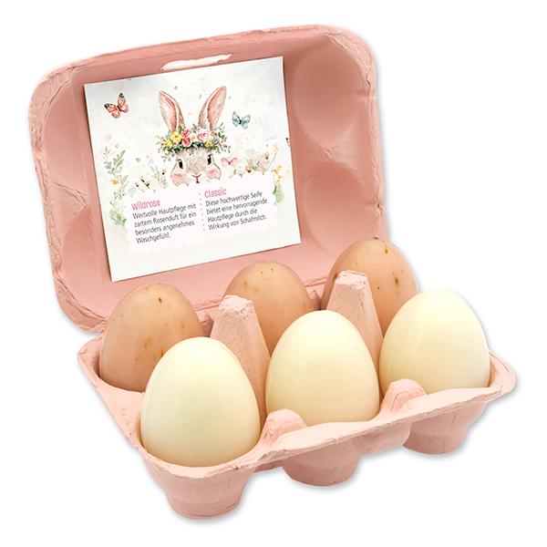 Schafmilchseifen Ostereier 61g "Osterzauber Motiv 9" im Eierkarton, Classic/Wildrose