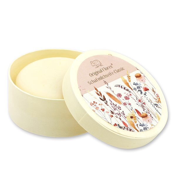 Schafmilchseife rund 100g in Spanschachtel 'Blütenzart' mit Motiv 1, Classic