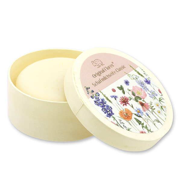 Schafmilchseife rund 100g in Spanschachtel 'Blütenzart' mit Motiv 4, Classic