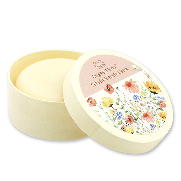 Schafmilchseife rund 100g in Spanschachtel 'Blütenzart' mit Motiv 8, Classic
