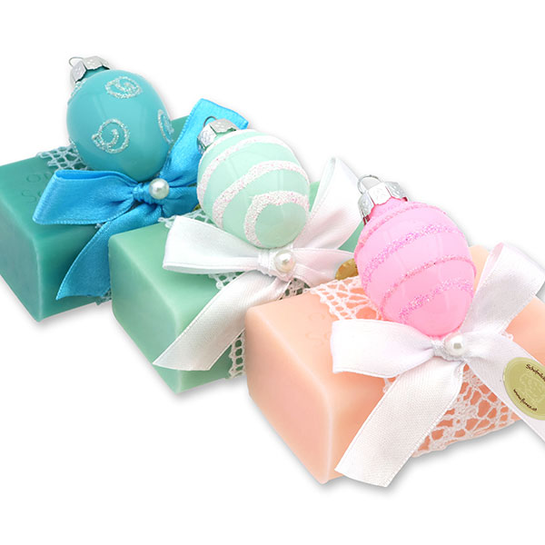 Schafmilchseife eckig 100g dekoriert mit Osterei, sortiert