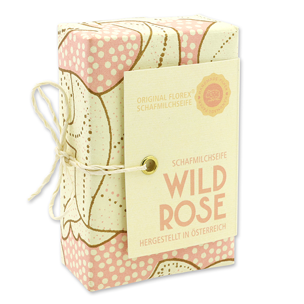 Schafmilchseife eckig 150g "Handmade Paper - Special Edition", Wildrose mit Blüten