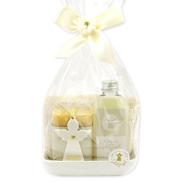 Pflegeset 4-teilig dekoriert mit Schutzengel mit Herz in Cello, Classic/Zirbe