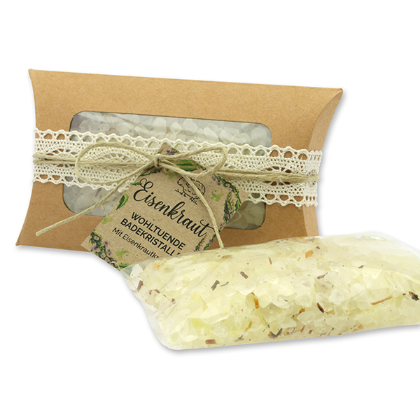 Badesalz 120g im Kissen mit Sichtfenster "Wohlfühlzeit", Eisenkraut