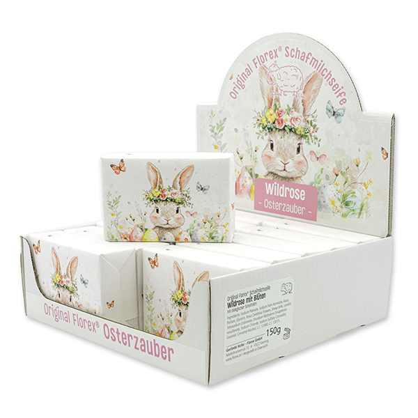Schafmilchseife eckig 150g "Osterzauber Motiv 9", Wildrose mit Blüten