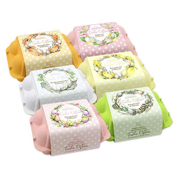 Schafmilchseifen Ostereier 61g "Frohe Ostern" im Eierkarton, sortiert