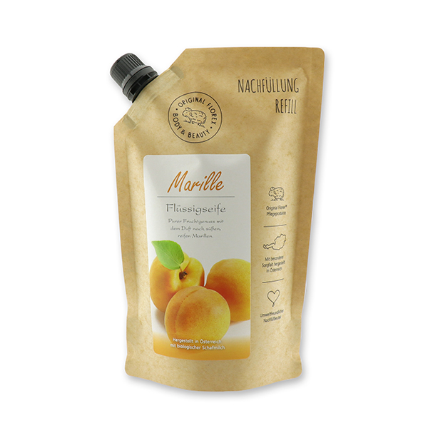 Flüssigseife mit biologischer Schafmilch 500ml im Nachfüll-Beutel, Marille