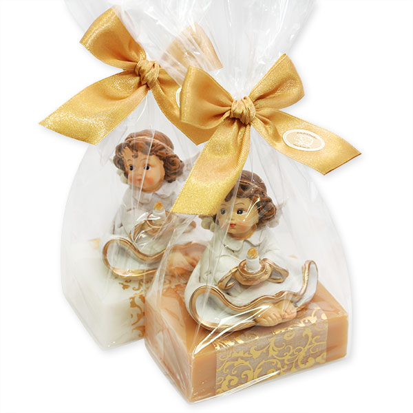 Schafmilchseife eckig 150g dekoriert mit Engel in Cello, Classic/Quitte