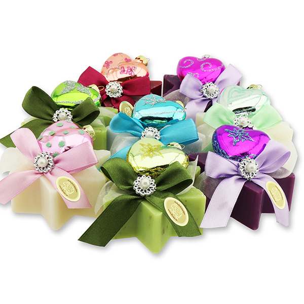 Schafmilchseife Stern 80g dekoriert mit Glasherz, sortiert