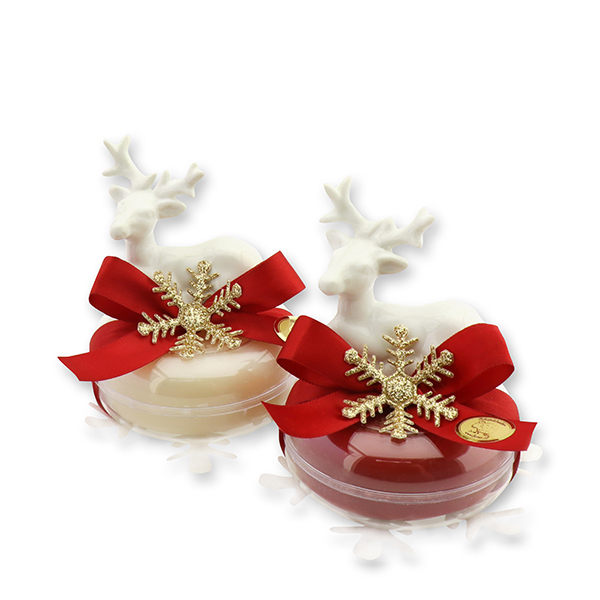 Schafmilchseife rund 100g in Dose dekoriert mit Hirsch, Classic/Granatapfel