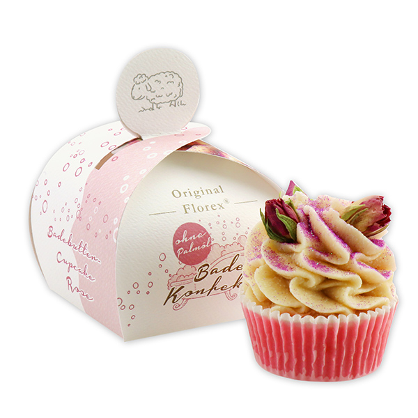 XL Bath butter cupcake with sheep milk 90g, Rose/Rosebud, packed in a paper-box