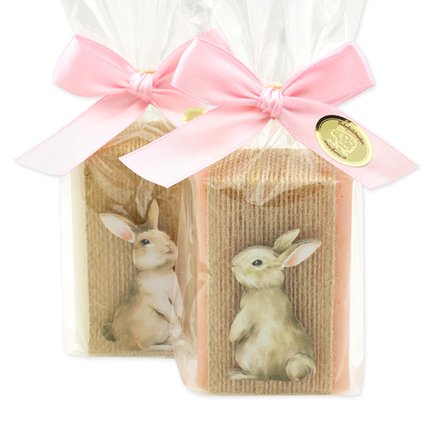 Sheep milk soap 100g decorated with a rabbit in a cellophane, Classic/Wild rose with petals