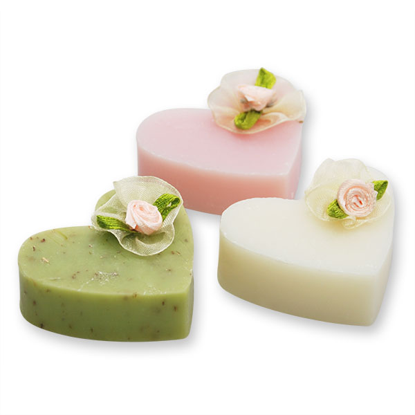 Sheep milk soap heart 23g, decorated with rose, sorted