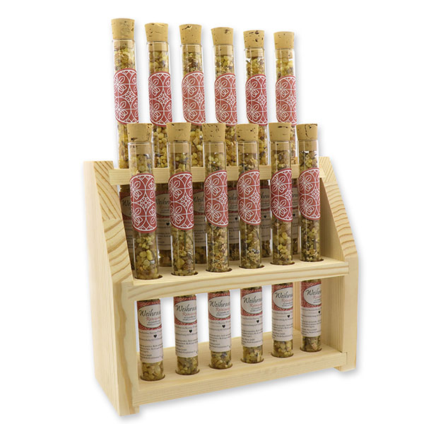Wooden stand filled with incense mix 18g in a vial, "Reinigung"