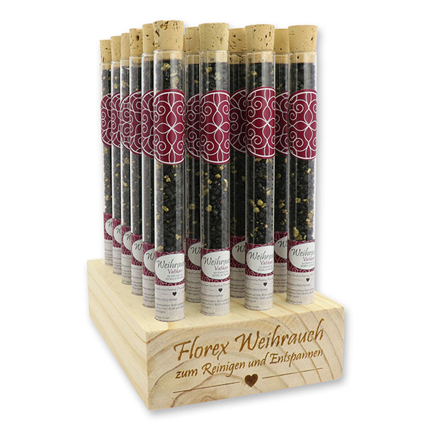 Wooden stand filled with incense mix 18g in a vial, "Vatikan"