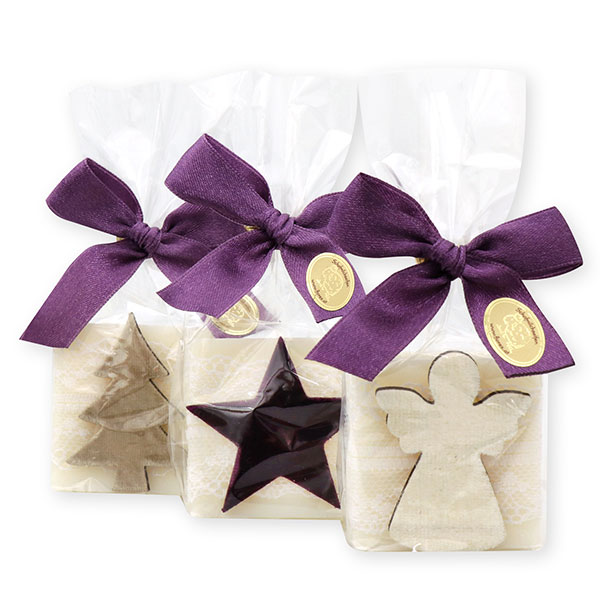 Sheep milk soap 35g decorated with christmas decorations in a cellophane, Classic