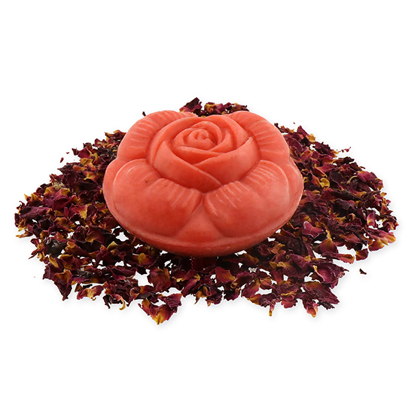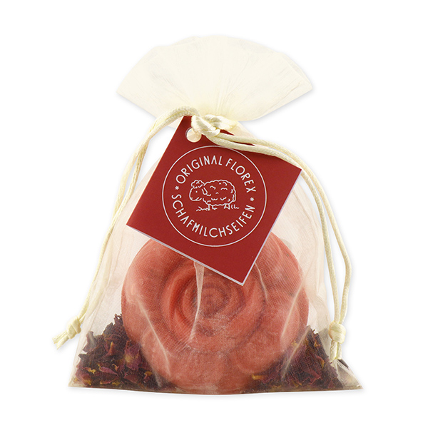 Sheep milk soap rose round 110g, with rose petals in organza, Rose with petals