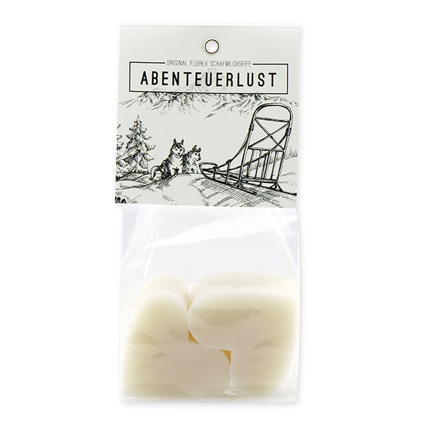 Schafmilchseife Herz mittel 4x23g in Cello "Abenteuerlust", Edelweiß