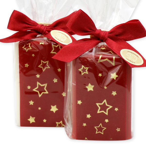 Schafmilchseife eckig 100g dekoriert mit Dekoband Stern in Cello, Classic/Granatapfel