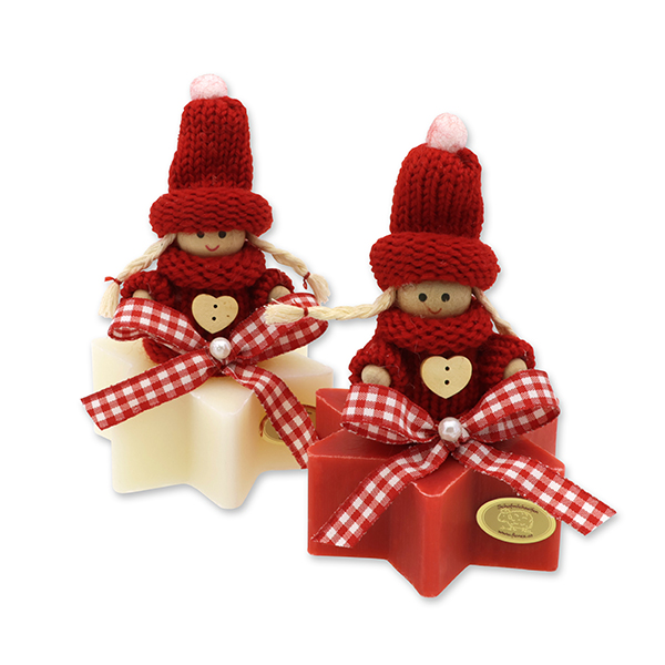 Schafmilchseife Stern 80g dekoriert mit Wollwichtel, Classic/Granatapfel