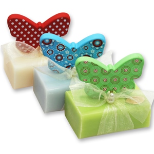 Schafmilchseife eckig 100g, dekoriert mit Schmetterling, sortiert