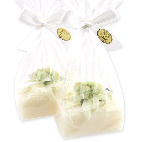 Schafmilchseife eckig 100g dekoriert mit Edelweiß in Cello, Edelweiß