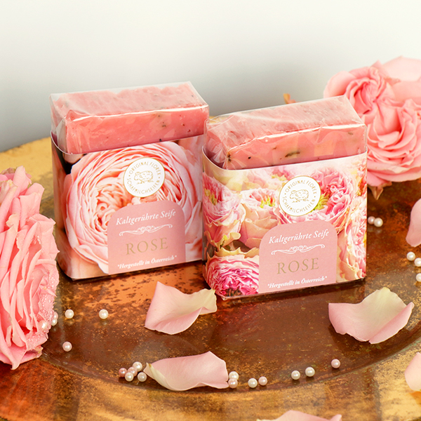 Schafmilchseife kaltgerührt 150g "Goldene Momente", Wildrose
