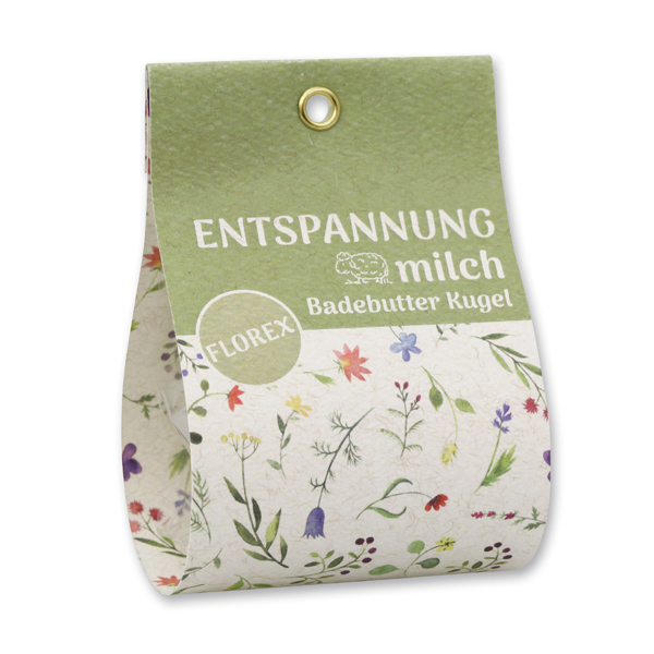 Badebutter-Kugel mit Schafmilch 50g in Tasche "Entspannung", Lemongras