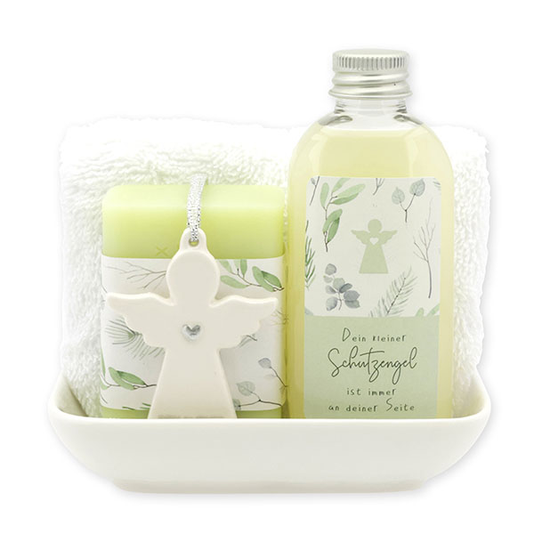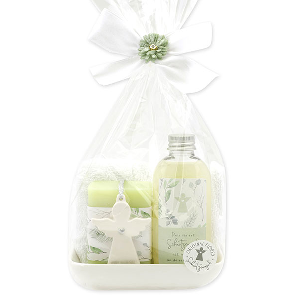 Pflegeset 4-teilig dekoriert mit Schutzengel mit Herz in Cello, Classic/Wiesenblume