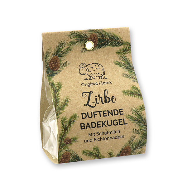 Badebutter-Kugel mit Schafmilch 50g in der Tasche "Wohlfühlzeit", Zirbe