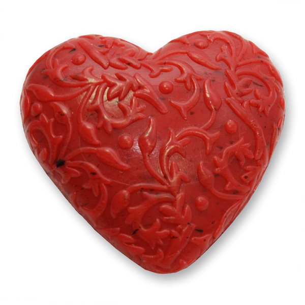 Schafmilchseife Herz Florex 80g mit Rosenblüten im Organzasackerl "Wohlfühlzeit", Rose mit Blüten