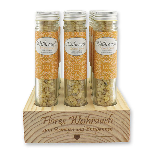 Aufsteller Holz befüllt mit Weihrauch 35g im hohen Glas, Eritrea grob
